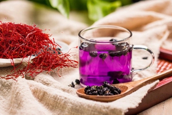 黑枸杞藏红花一起泡水,为中药茶饮,具有补充营养、活血破瘀等功效。