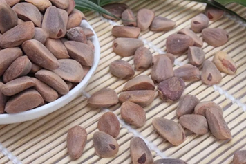 海松子冬季采收,一般在晒干、去硬壳、取出种子后使用。