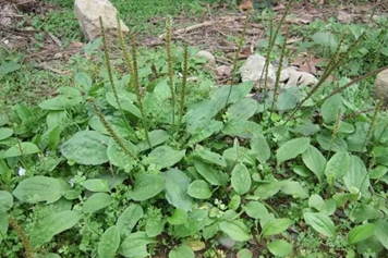 五斤草即车前草,为车钱科植物、平车前的带根全草,可入药,具有清热解毒、利水通淋的功效。
