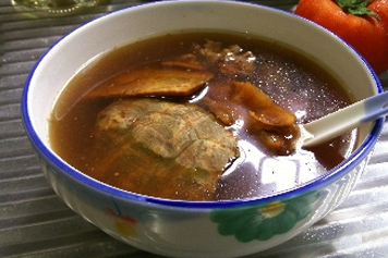 乌龟又叫金钱龟、金龟、神龟,是一种爬行动物,其味甘、咸,性平,归肺、肾经;土茯苓为百合科植物叶菝葜的干燥根茎,其味甘、淡,性平,归肝、胃经。乌龟煲土茯苓具有益阴补血、祛风除湿的功效。