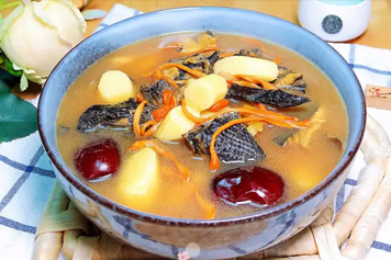乌鸡富含多种营养物质;虫草花、红枣、枸杞为常见中药材。乌鸡虫草花红枣枸杞汤具有补充营养、提供能量、促进消化的功效。