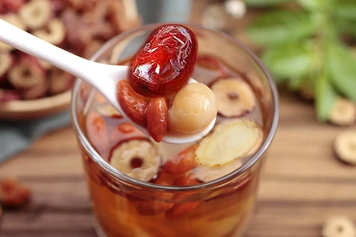 西洋参桂圆红枣枸杞茶口感香甜,适当饮用,可促进唾液及胃液分泌,刺激胃肠道蠕动,进而起到增进食欲的作用,适合食欲不振者饮用。