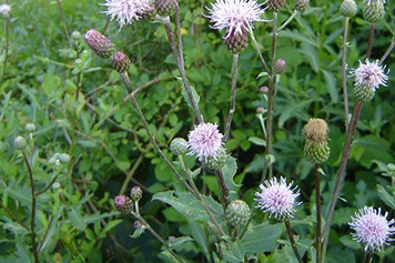 小蓟菜生于山坡、河旁或荒地、田间,常可在5~6月盛开期,割取全草晒干或鲜用。