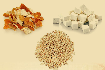 薏米味甘、淡,性凉,归脾、胃、肺经;陈皮味苦、辛,性温,归脾、肺经;茯苓味甘、淡,性平,归心、肺、脾、肾经。薏米陈皮茯苓同用具有利水渗湿、健脾止泻、燥湿化痰的功效。