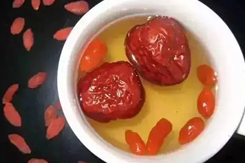 红枣能养心血、安心神,故红枣杞子泡水喝具有养血安神之功效,可用于心阴不足、肝气失和之妇人脏躁、精神恍惚、无故悲伤欲哭、心中烦乱、睡眠不安等症。