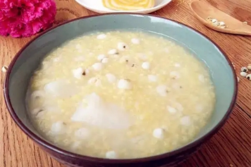 小米是禾本科狗尾草属一年生草本作物,味甘咸,性凉,归脾、肾经。薏仁米即薏米,是禾本科植物薏苡的干燥成熟种仁。小米薏仁米粥具有通利水道、健脾除湿等功效。