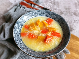 南瓜胡萝卜小米粥是由南瓜、胡萝卜、小米熬制而成,其中南瓜含有胡萝卜素、碳水化合物、可溶性膳食纤维,以及钾、钠、钙、镁、铁、锌等营养元素。胡萝卜含胡萝卜素、维生素B、维生素B2、钙、铁、磷等。小米含有丰富的碳水化合物,以及膳食纤维、钾、磷、镁、钠、铁、锌、维生素B等营养物质,南瓜胡萝卜小米粥具有补充能量、健脾和中的功效。
