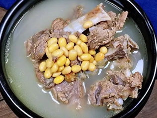 牛骨为牛科动物黄牛或水牛的骨骼,含有蛋白质、脂肪等营养成分。黄豆又名菽、大豆,为豆科植物大豆的种子,含有碳水化合物、维生素等营养成分。牛骨煲黄豆具有补充营养、提供能量、强健筋骨等功效。