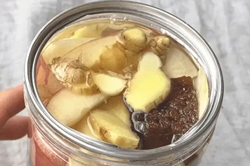 苹果为蔷薇科苹果属植物的果实,其口感甘甜爽脆;生姜为姜科植物姜的干燥根茎,口感辛辣刺激;而红糖指带蜜的甘蔗成品糖,苹果生姜红糖煮水具有补充营养、润肠通便的功效。