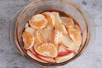 苹果和桔子水分含量较多,且含有较多的膳食纤维,膳食纤维具有吸水性且不溶于水的特性,食用后可刺激胃肠道蠕动,增加胃肠道内容物排出,苹果和桔子一起煮熟吃可促进消化,缓解消化不良的症状。