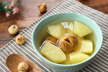 苹果中含有丰富的胡萝卜素、维生素等,无花果中含有大量枸橼酸、B族维生素及无花果蛋白酶等成分,有抗氧化的作用,可清除体内的自由基,苹果无花果煮水有改善皮肤状态、美容养颜的功效,可缓解皮肤干燥、暗沉的情况。