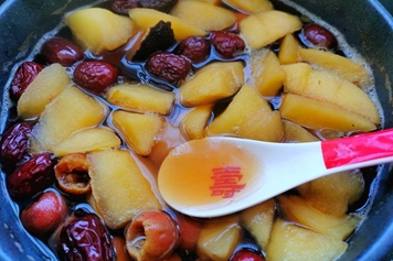 山楂味甘酸,微温不热,可消食化积,尤其可消化油腻肉食积滞;苹果味甘酸,入脾经,可健胃消食;大枣味甘,归脾、胃经,能补脾和胃,三者一起煮有消食健胃的效果,消化不良的人可适量食用。