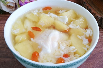 苹果鸡蛋汤是以苹果、鸡蛋为主要原材料制作的食物。其中苹果为蔷薇科苹果属植物苹果的果实,含有维生素、膳食纤维等营养成分。鸡蛋又叫鸡卵、鸡子,是一种常见的禽蛋类食物,其中含有丰富的蛋白质、饱和脂肪酸等营养成分。苹果鸡蛋汤具有提供能量、补充营养的功效。