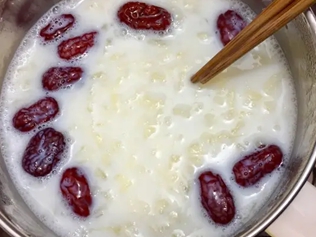 红枣洗净去核,银耳洗净泡发,将银耳、红枣放入锅中小火熬煮,加入牛奶和糯米糊勾芡,出锅后可食用。