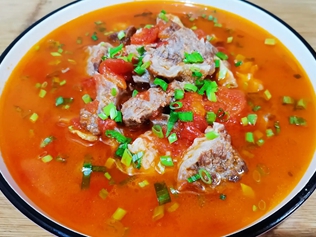 牛肉炖西红柿主要由牛肉和西红柿搭配炖煮制成,具有补充营养、缓解饥饿等功效。