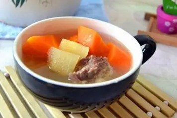 建议选择肉质粉嫩均匀且新鲜的排骨,色黄或粉红、带有竖状条纹且水分充足的苹果,以及水分充足、质地较坚硬的红萝卜一同炖汤。