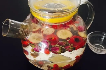 山楂桑葚玫瑰花泡水喝芳香四溢、酸甜可口,可补充水分,刺激唾液分泌,具有生津解渴的功效,可缓解口干口渴症状。
