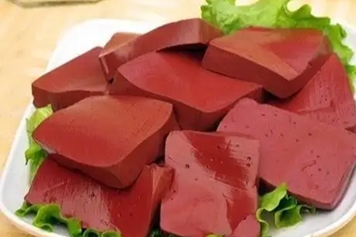 乌鸡血通常被制成血豆腐,其外观鲜红,口感爽滑鲜嫩,具有促进食欲、补充营养等功效。