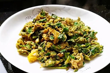 香椿炒鸭蛋味道可口,营养丰富,具有补充营养、祛暑化湿的功效。