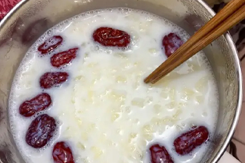 取适量银耳、红枣洗净后放入锅中,加适量牛奶后煮至软烂,放至温凉即可食用。