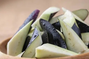 将紫茄子连皮一起洗净,切成片,放入锅中翻炒至全熟即可食用。