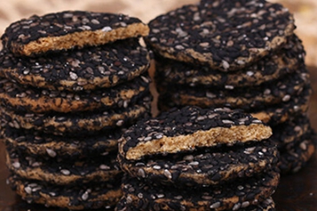 黑芝麻饼干是以黑芝麻、面粉、鸡蛋为主要食材,糖、油为辅料制作而成的零食,其味道酥脆香甜,具有提供能量、补充营养等功效。