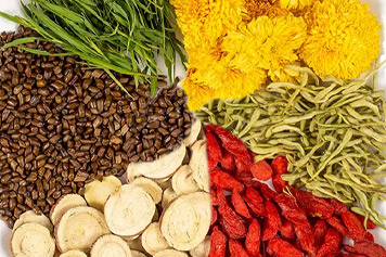 竹叶味甘、淡,性寒;金银花味甘,性寒;菊花味辛、甘、苦,性微寒;枸杞、甘草味甘,性平;决明子味甘、苦、咸,性微寒。竹叶、金银花、菊花、枸杞、甘草、决明子同用具有清热泻火、清肝明目等功效。