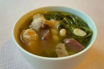 西洋菜陈肾汤由西洋菜、陈鸭肾、瘦肉、陈皮、蜜枣等原材料炖煮而成,西洋菜别名豆瓣菜,可食用部位为嫩茎和叶子。西洋菜陈肾汤具有补充营养、促进排便、清肺止咳等功效。