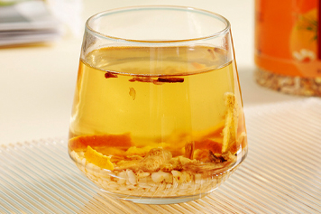 大米陈皮姜丝茶是常见的中药茶饮,其具有发汗解表、健脾养胃、燥湿化痰等功效。