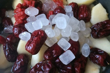 红枣味甘,性温,归脾、胃、心经;枸杞味甘,性平,归肝、肾经;生姜味辛,微温,归肺、脾、胃经;苹果味甘,性凉,归脾、肺、胃、心经。红枣枸杞生姜苹果煮水喝具有补中益气、滋补肝肾、促进排便等功效。