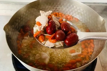 红枣枸杞瘦肉汤主要是由红枣、枸杞、瘦肉经过炖煮制作而成,红枣味甘,性温,归脾、胃、心经;枸杞味甘,性平,归肝、肾经;瘦肉味甘、咸,性温,归脾、胃、肾经。红枣枸杞瘦肉汤具有养血安神、滋补肝肾等功效。