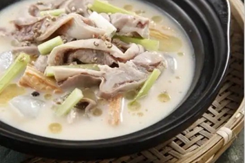 猪肚味甘,微温;胡椒味辛,性热,能温里散寒、温经通络、行气止痛。故猪肚胡椒具有温中下气的功效,适宜脘腹冷痛者、恶心反胃者食用。