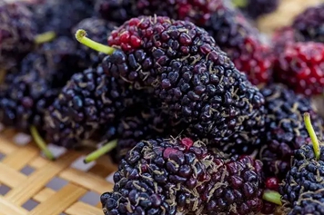 紫桑葚为桑科植物桑的成熟果实,常作为水果食用,滋味酸甜,营养丰富,具有提供营养、促消化等功效。