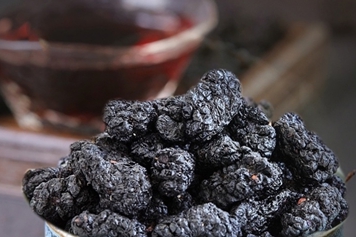 紫桑葚干为桑科植物桑的干燥成熟果穗,干制可入药用,味甘、酸,性寒,归心、肝、肾经,具有补血滋阴、生津润燥等功效。