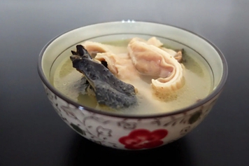乌鸡猪肚汤是一道美味的佳肴,带有浓郁的香味,汤色浓稠,美味可口,其中乌鸡又名乌骨鸡,肌肉、骨头和大部分内脏都呈乌黑色;猪肚为猪科动物猪的胃,富有嚼劲。乌鸡猪肚汤具有补充营养、提供能量等功效。
