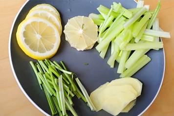 芹菜又名旱芹、香芹,为伞形科植物旱芹的全草植物,性凉,味甘、微苦,入肺、胃经。柠檬又名黎檬子、宜母子,属常绿小乔木,味甘、酸,性凉,入肺、胃、肝经,芹菜柠檬一起煮水喝具有补充营养、生津止渴的功效。
