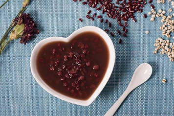 赤红豆和薏米煮水中,赤红豆又叫赤小豆,为豆科植物赤小豆或赤豆的干燥成熟种子,味苦,性平。薏米又叫薏苡仁,为禾本科植物薏苡的干燥成熟种仁,味甘、淡,性凉。赤红豆和薏米煮水,具有利水渗湿、解毒排脓等功效。