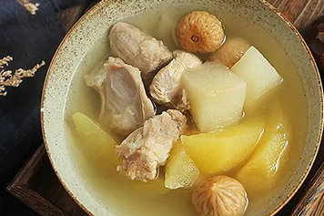 雪梨苹果无花果瘦肉汤中,雪梨为蔷薇科植物雪花梨的成熟果实,味甘、微酸,性凉,归肺、胃经;苹果味甘、性凉,归脾、肺、胃、心经;无花果为桑科植物无花果的干燥果实,味甘,性寒,入肺、脾、大肠经;瘦肉一般是猪瘦肉,味甘、咸,性温,归脾、胃、肾经。雪梨苹果无花果瘦肉汤,具有滋阴润燥、润肠通便等功效。