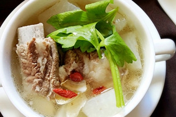 白萝卜味辛能行气,入肺经可宣肺气、化痰涎而止咳平喘。百合性微寒入肺经,能补肺阴兼能清肺热,有养阴清肺、润燥止咳之效。白萝卜百合汤具有润肺止咳的功效,可用于阴虚燥咳、劳嗽咳血等病症。