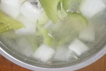 白萝卜味辛、甘,性凉,归肺、胃经,可化痰清热、补脾养胃、润肺化痰、平喘止咳。苦瓜味苦性寒,可清热涤暑、润脾补肾,白萝卜苦瓜汤具有清热祛暑、补脾益气的功效。