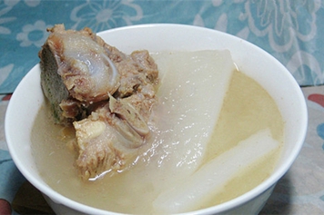 猪骨味甘可补益,性质温热,又归于脾、胃经,可滋补脾胃。因此白萝卜猪骨煲汤具有补脾和胃的功效,可以用于缓解脾胃虚弱、病后体虚等病症。