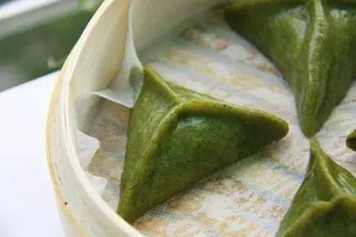艾角别名粉果,主要原料是艾草和糯米粉,艾叶和糯米粉混合制成粉皮后包成角状,内含咸、甜馅料,具有补充营养、养胃健脾、温经散寒等功效。
