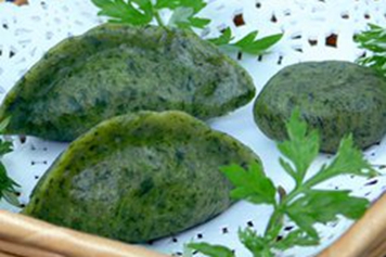 艾叶鲜嫩多汁,与面粉制作而成的艾叶饺子中含有碳水化合物、维生素、钙、磷、铁、锌以及多种矿物质元素,适量食用具有补充营养的功效。