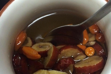 党参为桔梗科植物党参、素花党参或川党参的根,秋季采挖洗净,晒干后入药,味甘,性平,归脾、肺经。大枣别名红枣、枣,为鼠李科植物枣的成熟果实,秋季果实成熟时采收,味甘,性温,归脾、胃、心经。党参大枣泡水具有补脾肺气、补血安神的功效。