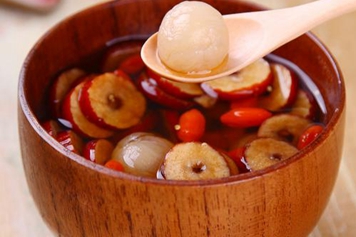 桂圆、红枣甘温,党参、枸杞甘平,入血分能活血化瘀、养血安神、补血宁心,可用于血虚、血瘀引起的心神不宁、夜寐不安、心悸、面色无华、胸胁刺痛、皮下瘀斑等症。