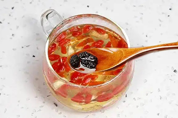 枸杞味甘性平,入肝肾经,长于滋肾精、补肝血,为平补肾精肝血之品,可滋补肝肾,因此陈皮、枸杞、桑葚泡水喝具有滋补肝肾的功效,适用于肝肾阴虚、精血不足所致的腰膝酸痛、眩晕耳鸣等病症。