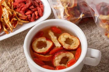 陈皮为芸香科植物橘及其栽培变种的果皮,晒干或低温干燥可作药用。枸杞为茄科植物宁夏枸杞的成熟果实,可作药用。山楂为蔷薇科植物山里红或山楂的成熟果实,切片干燥后可作药用。陈皮、枸杞、山楂泡水,具有理气健脾、滋补肝肾、消食健胃的功效。