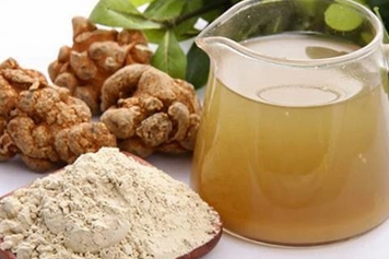 川七别名落葵薯,川七粉是以落葵薯上的干燥瘤块状珠芽为原材料制成的粉,气微,味微苦,性温,归脾、胃经,具有补肾强腰、散瘀消肿等功效。