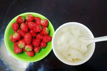 草莓为蔷薇目蔷薇科植物草莓的成熟果实,其口感酸甜;而梨通常是蔷薇科梨属植物梨的成熟果实,其口感爽脆,草莓加梨具有补充营养、促进消化、清肺化痰等功效。