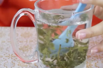 取适量茶叶、醋,加入开水,冲泡一段时间即可服用。